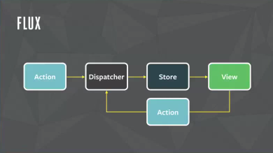 이 아키텍처는 이벤트 주도 방식으로 기존 MVC를 조금 변경한 것이다. 「Store」는 자기 자신(그리고 아마도 호출 순서의 의존성)을 Dispatcher에 등록하고 그 Dispatcher는 Action을 처리하여 올바른 호출 순서가 달성되도록 보증한다. 이것은 올바른 호출 순서를 보증해야 하는 부담을 컨트롤러에서 Dispatcher와 Store로 분리한 것이다. 이것은 동작을 수정하는 데 필요한 지식을 줄여준다.