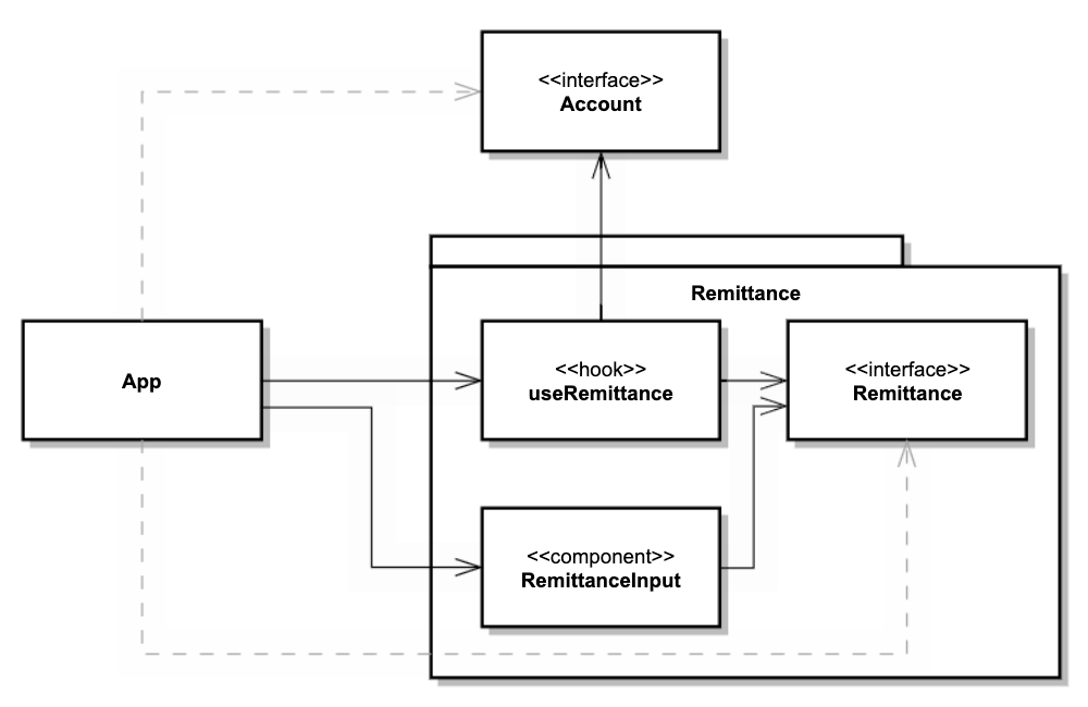 하나의 논리적인 패키지 단위를 만들고 그곳에 RemittanceInput, useRemittance를 함께 뒀다. RemittanceInput과 useRemittance는 Remittance 객체를 통해 소통한다. 서로 연관있는 것을 가까이 배치하여 관계에 대한 착오를 줄여 유지보수성을 높인다.